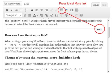 how to add read more link text in wordpress