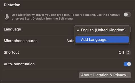 how to change dictation language in word mac