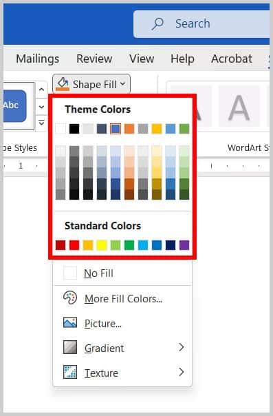 how to change inserted shape color in word