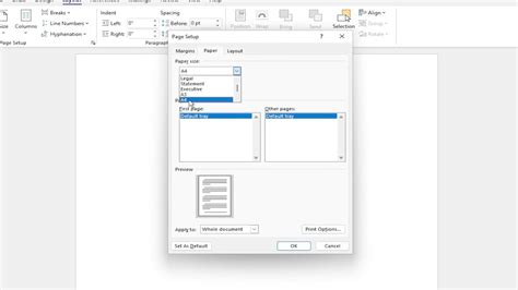 how to change size in word to a4