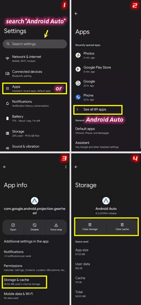 how to clear cache on android auto app