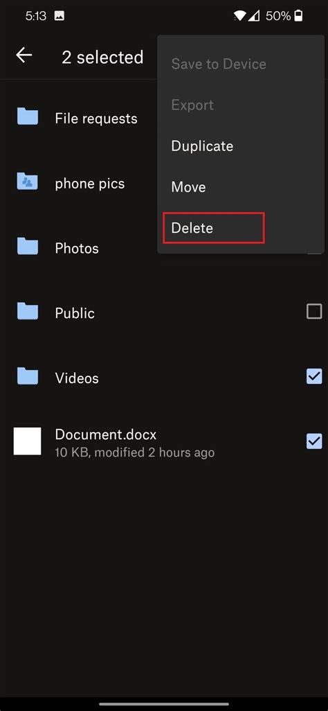 how to delete files in dropbox app