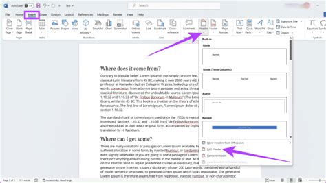 how to edit header in word for different pages