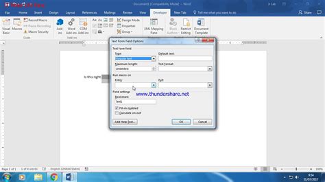 how to enter a text form field in word