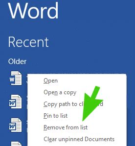 how to remove recent open files in word