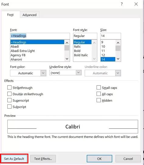 how to set default font size in ms word