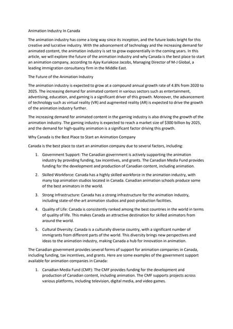 is animation in demand in canada