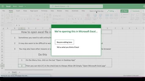 open excel in desktop app by default